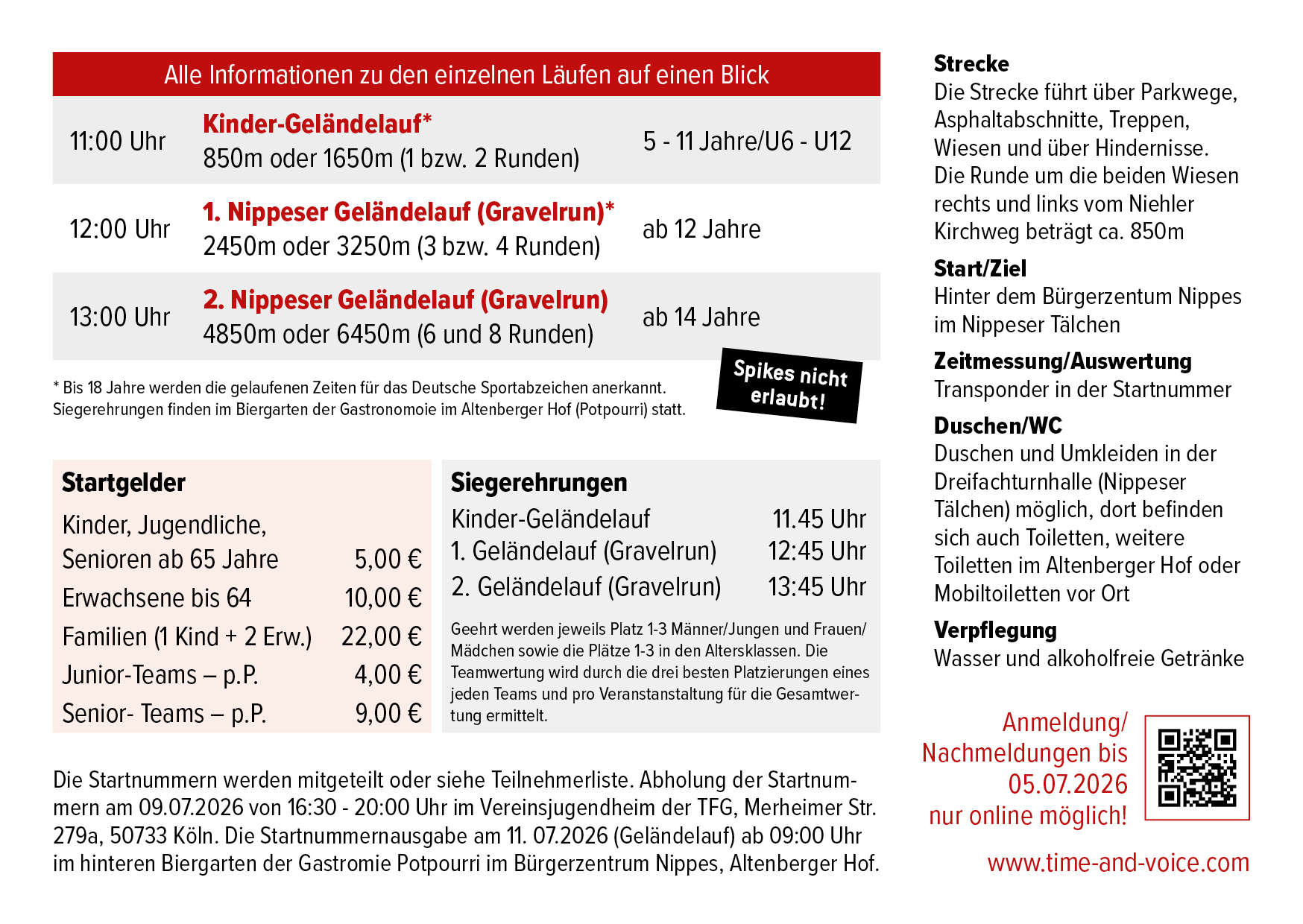 Die Nachmeldung und Startnummernausgabe erfolgt im Vereinsjugendheim der TFG Nippes.