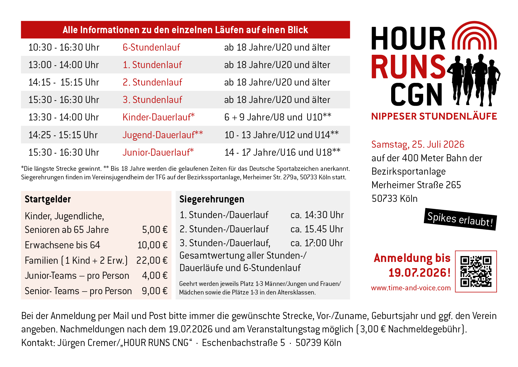 Nippeser Stundenlauf 2026 Anmeldung und Infos zu Startzeiten, Altersklassen und zum Startgeld